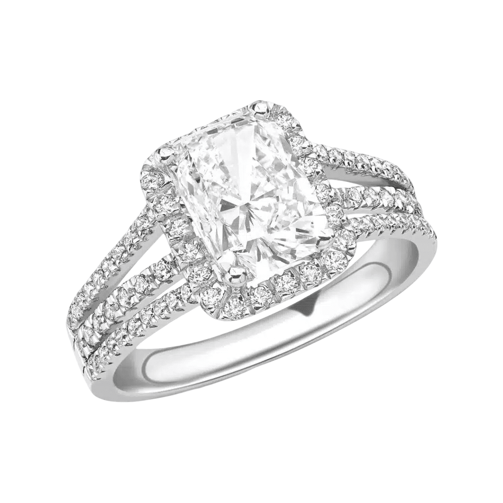 2.50cts G SI1 GIA Radiant Cut Diamond Halo Engagement Ring